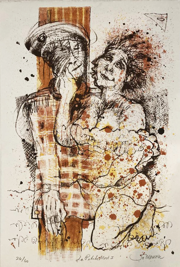 Jo Møller started out as an abstract artist and has since gradually included more and more figurative elements in his works. The expression in his art is constantly evolving, since he often gives up old familiar techniques to experiment with new ones.